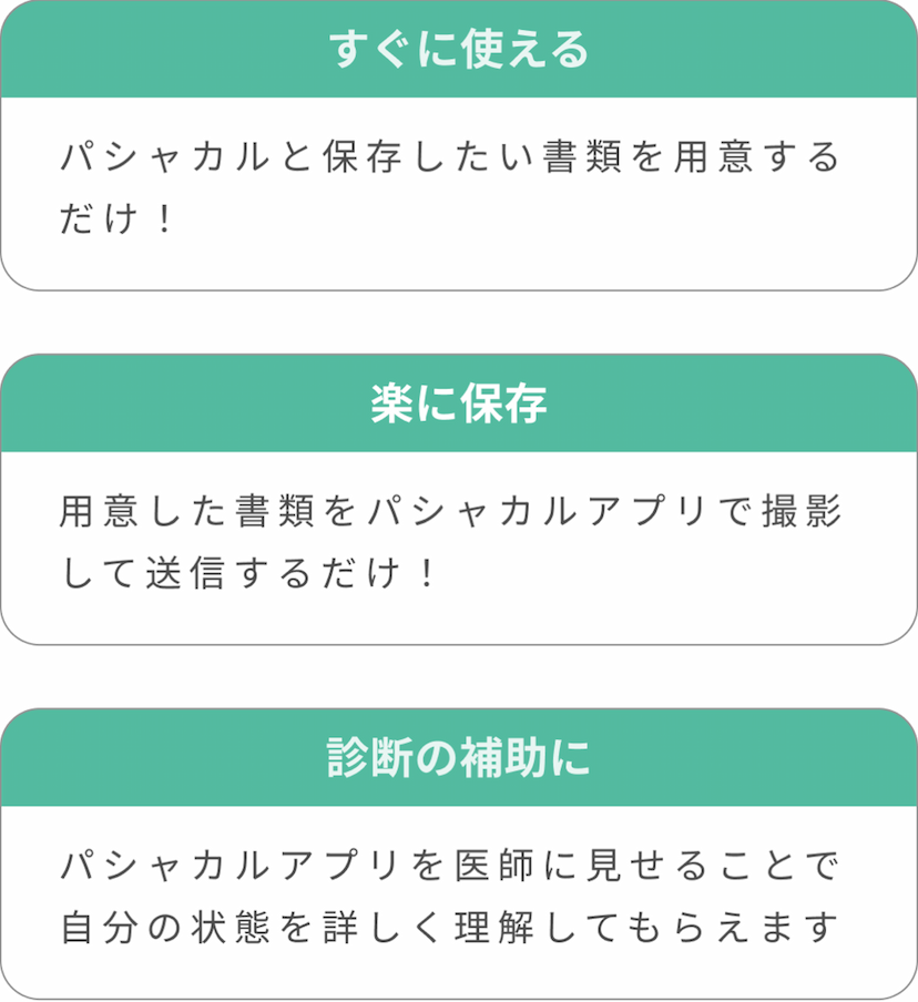 パシャっとカルテとはパシャっとカルテお薬手帳、血液検査、健康診断などアプリで管理パシャっとカルテはスマートフォンで撮影・アップロードするだけで自動でデータ化するアプリです。老若男女問わず幅広いユーザー様にパシャカルをご利用されてます。パシャっとカルテの特徴アカウント連携健活モニターとパシャっとカルテのアカウント連携を行うことで健活モニターでもパシャっとカルテで登録した健康診断情報が閲覧できます。動画パシャっとカルテの紹介動画ダウンロードはこちら
