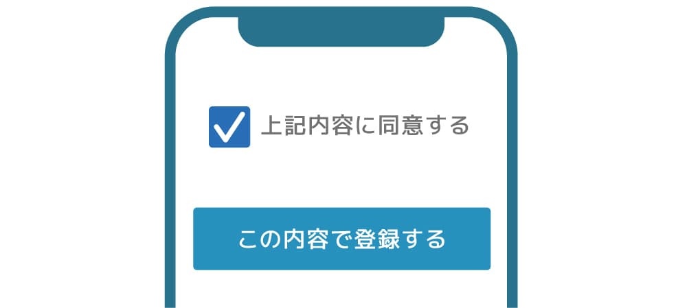 個人情報保護方針の内容をご確認いただき、同意いただけましたら「上記内容に同意する」にチェックを入れて「この内容で登録する」を押してください。